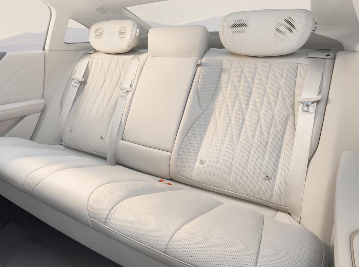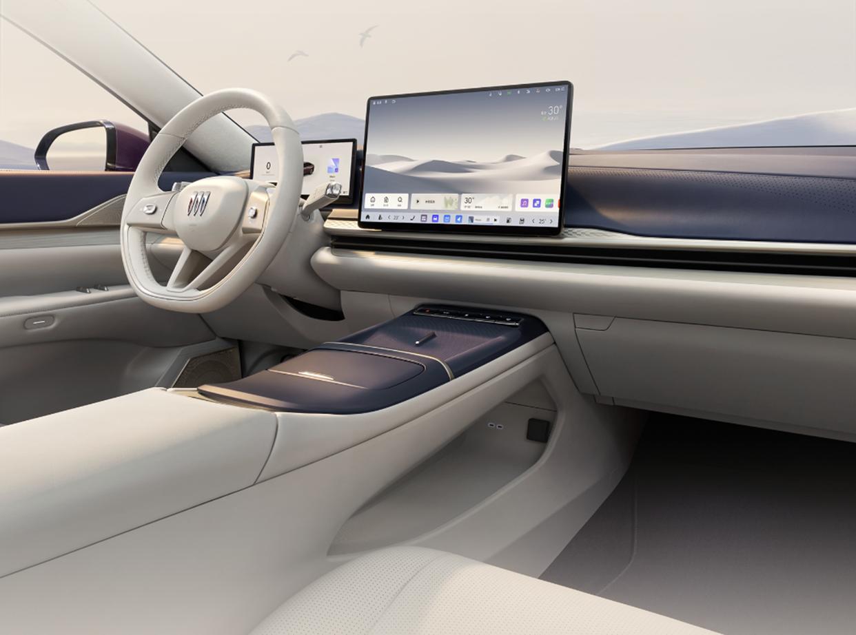 进入车内,别克至境L7采用了大面积灰米白Alcantara面料铺陈,还加入了大量黑色玻璃纤维装饰面板、碳纤维装饰面板,触手可及均为皮质软包。该车配备了四座全功能悬浮层座椅,均为Nappa真皮包裹,采用母婴级珍珠棉和Surflex,慢回弹三重舒适棉。配备了双120°副驾零重力座椅,支持4向电动腿拖,支持语音、屏幕、实体按键便捷开闭,可实现一键躺睡。别克至境L7还配备了Buick Sound剧院级豪华数字音响,拥有同级唯一27扬声器,2000W峰值功率,四个头枕音响的加入,也提升了整车的音乐体验。带有菱形纹路的座椅,头枕上还有Aniver手工刺绣。科技感方面,至境L7座舱配备了悬浮式的全液晶仪表、贴面式的全液晶中控大屏,都采用了窄边框设计,将首搭高通8775车机芯片。